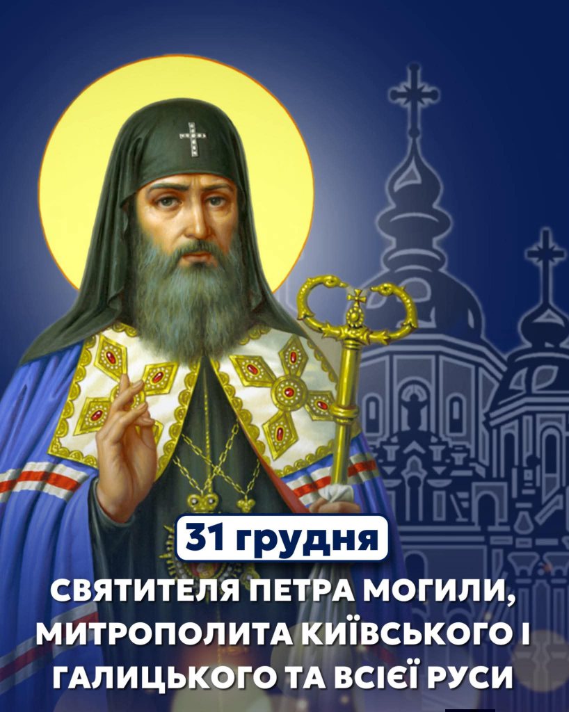 31 грудня - Святителя Петра Могили, митрополита Київського і Галицького та всієї Руси