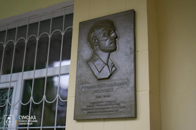 У Сумах в одному із навчальних закладів відбулося урочисте відкриття барельєфу на честь загиблого Захисника України – скульптора, випускника та викладача Руслана Мовчана.