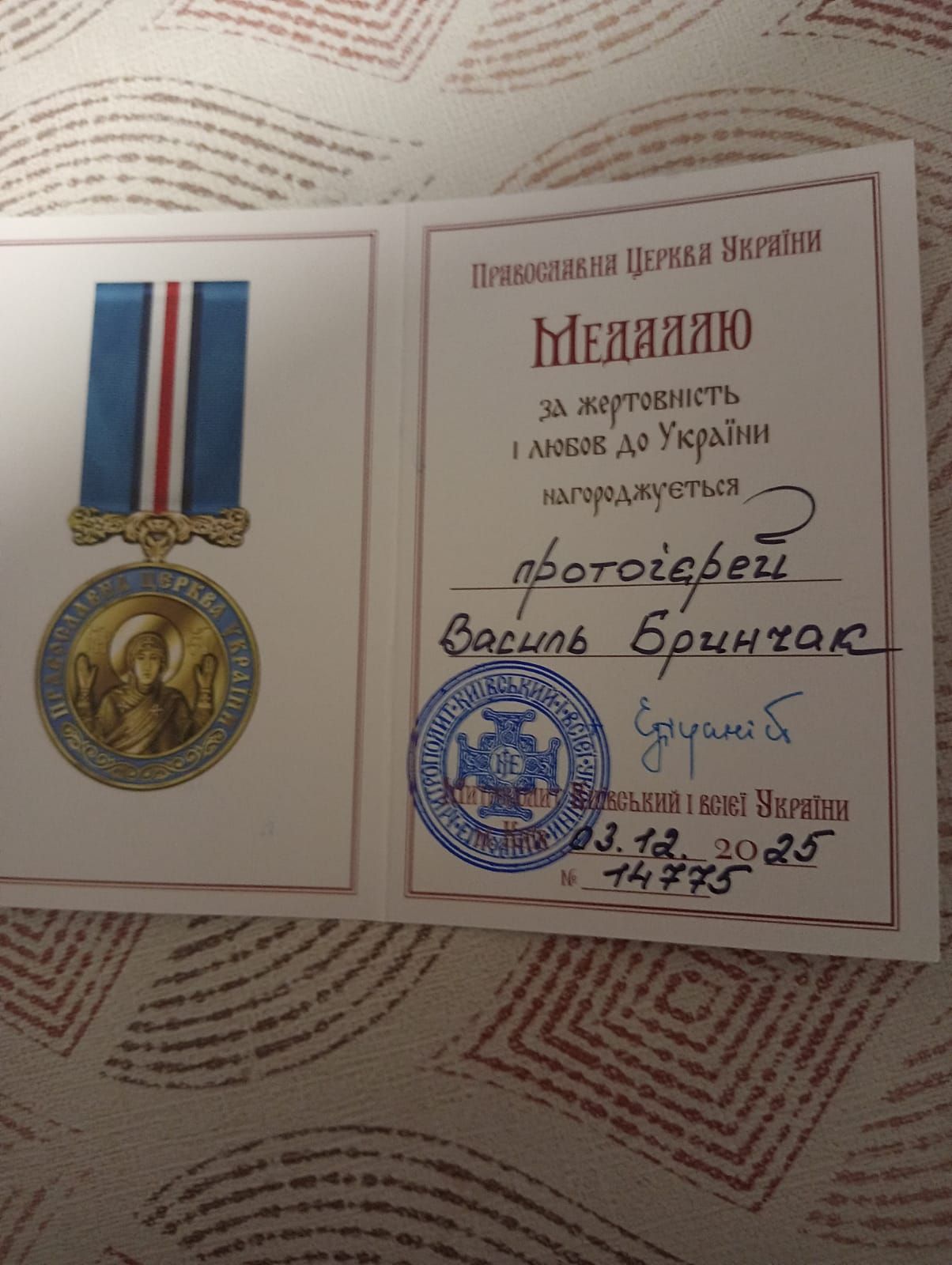 В день пам'яті великомучениці Варвари та з нагоди Дня ракетних військ і артилерії Блаженніший Митрополит Київський і всієї України відзначив військового капелана 27-ої окремої артилерійської бригади імені кошового отамана Петра Калнишевського митр. прот. Василя Бринчака медаллю за жертовність і любов до України.
