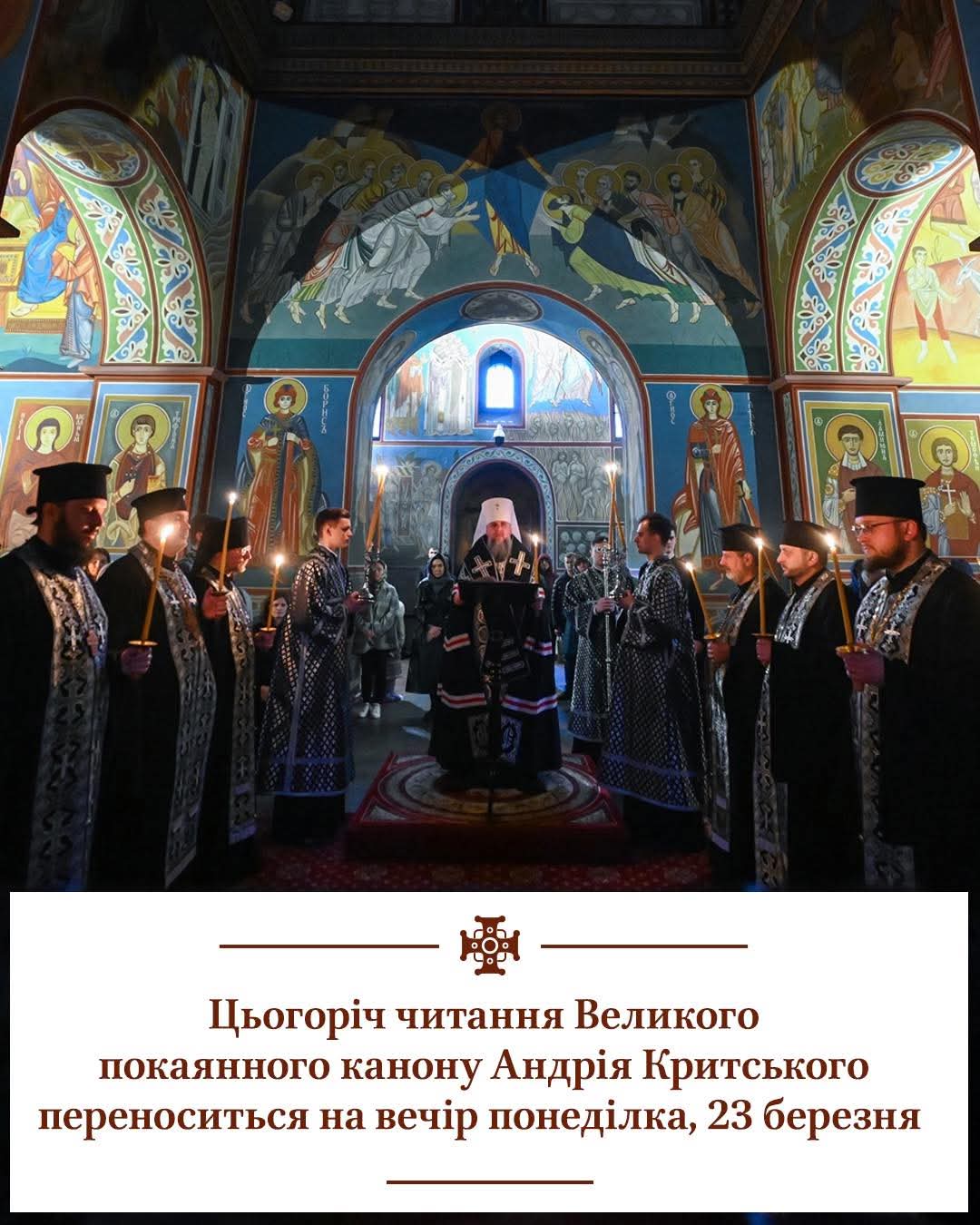 Цьогоріч читання Великого покаянного канону Андрія Критського переноситься на вечір понеділка, 23 березня