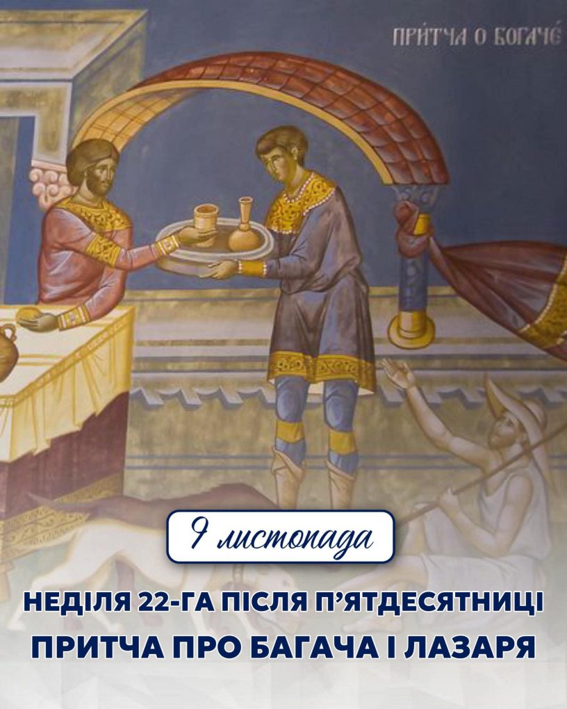 9 листопада - неділя 22-га після П'ятидесятниці. Притча про багача і Лазаря