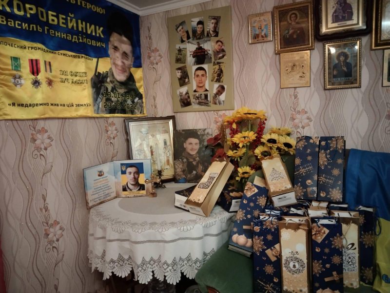 Окрім солодких подарунків кожний пакунок містив також невелику іконку святителя Василія Великого, в молитовну пам'ять про загиблого Героя українського народу Василя Коробейника, який три роки тому напередодні Різдва Христового віддав своє життя захищаючи волю, незалежність і соборність України та українського народу.