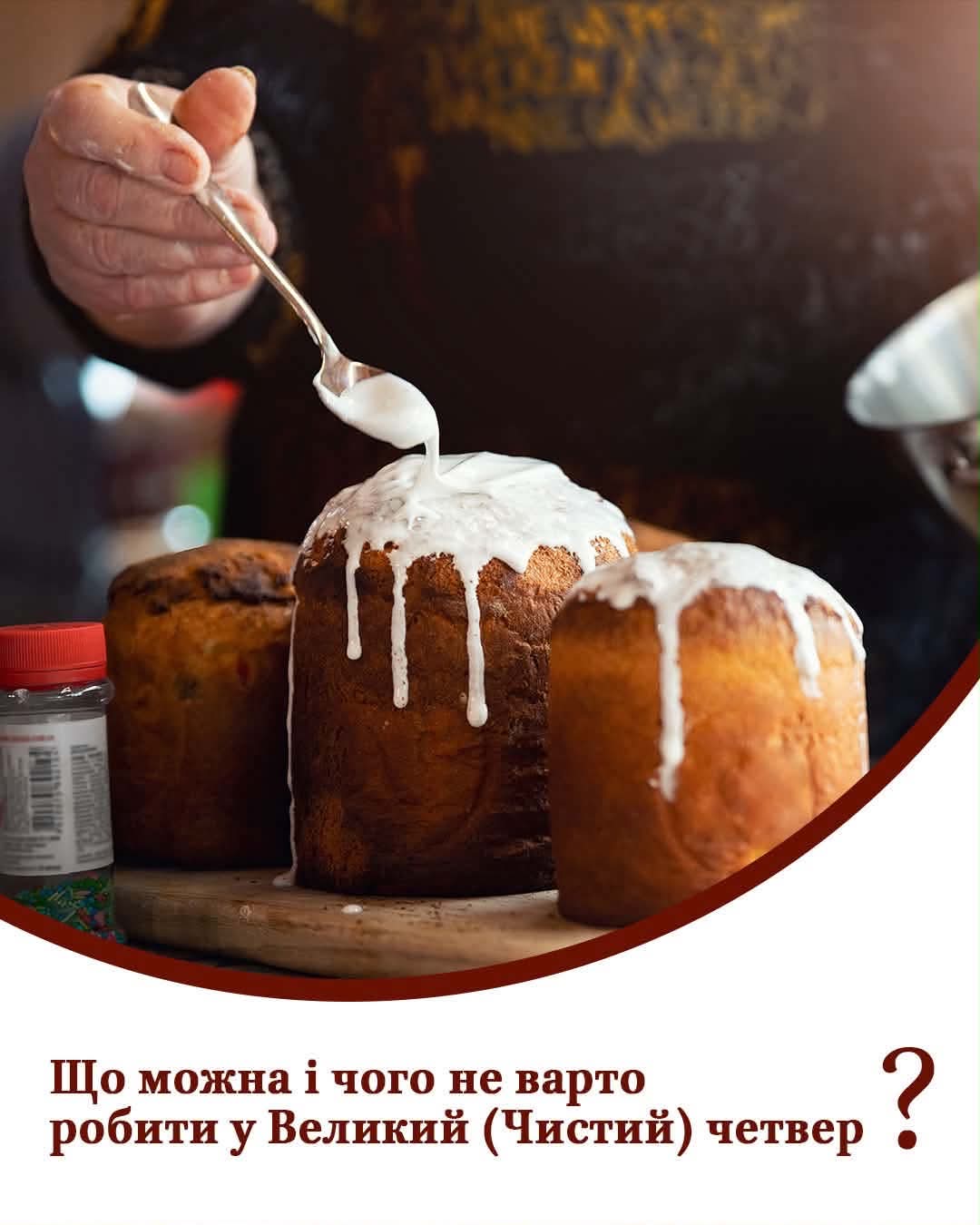 І не забувайте, що у Великий четвер окрім літургії ранком - ввечері звершується особливий чин спогаду Страстей Христових, коли послідовно читаються 12 уривків з Євангелія про останні години перед смертю Спасителя: про судилище в Синедріоні та у Пилипа, знущання над Месією, Його розпʼяття і поховання у гробі. Ця служба є неповторною, тому ніякі справи, навіть добрі, не повинні стати причиною, щоби пропустити її.